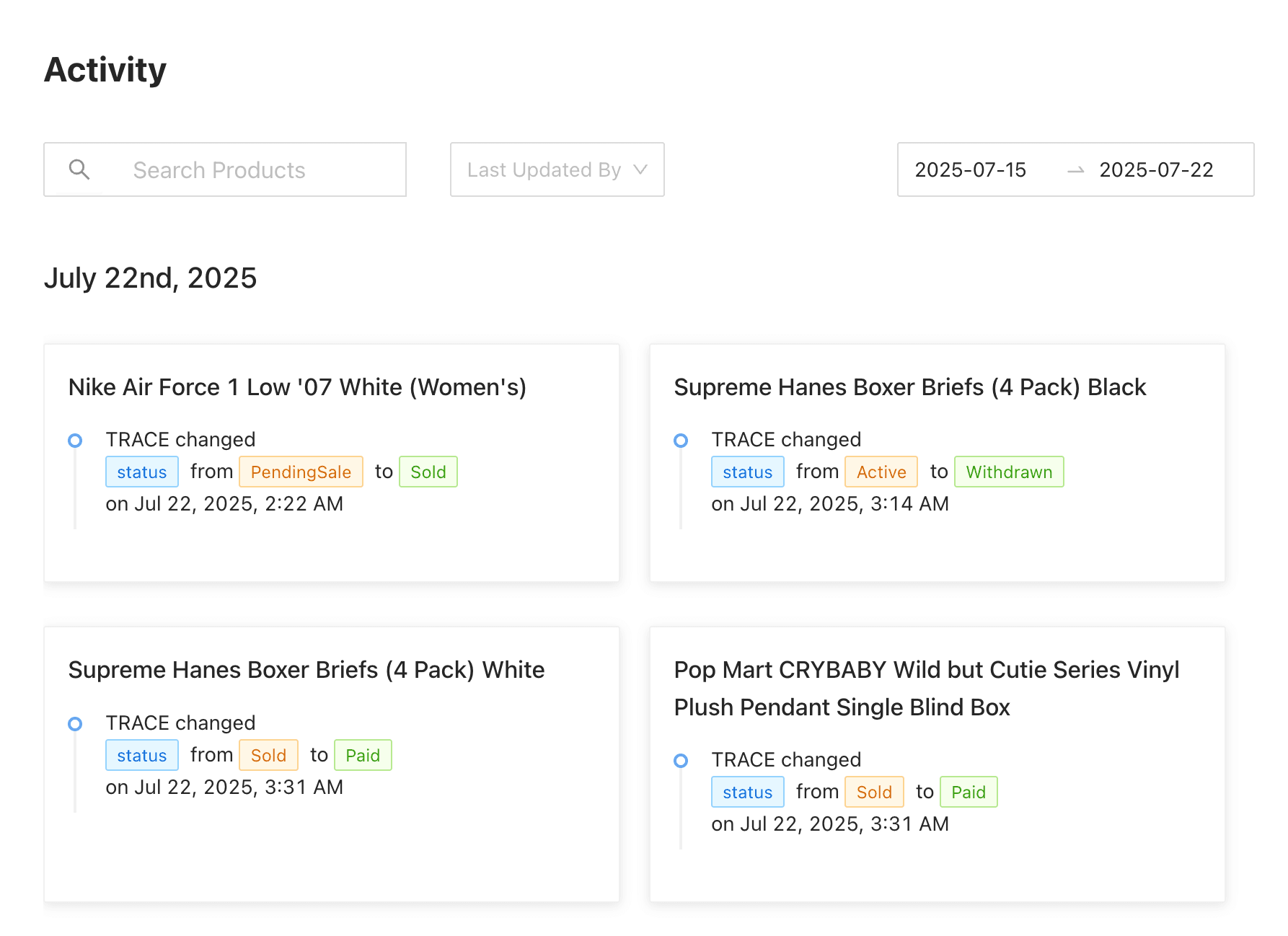 The new activity feed is designed to let store owners and managers keep on top of their inventory movement and know what's going on day to day in their stores. You can access the activity feed in the navbar or on the dashboard for easy monitoring of all store activities.