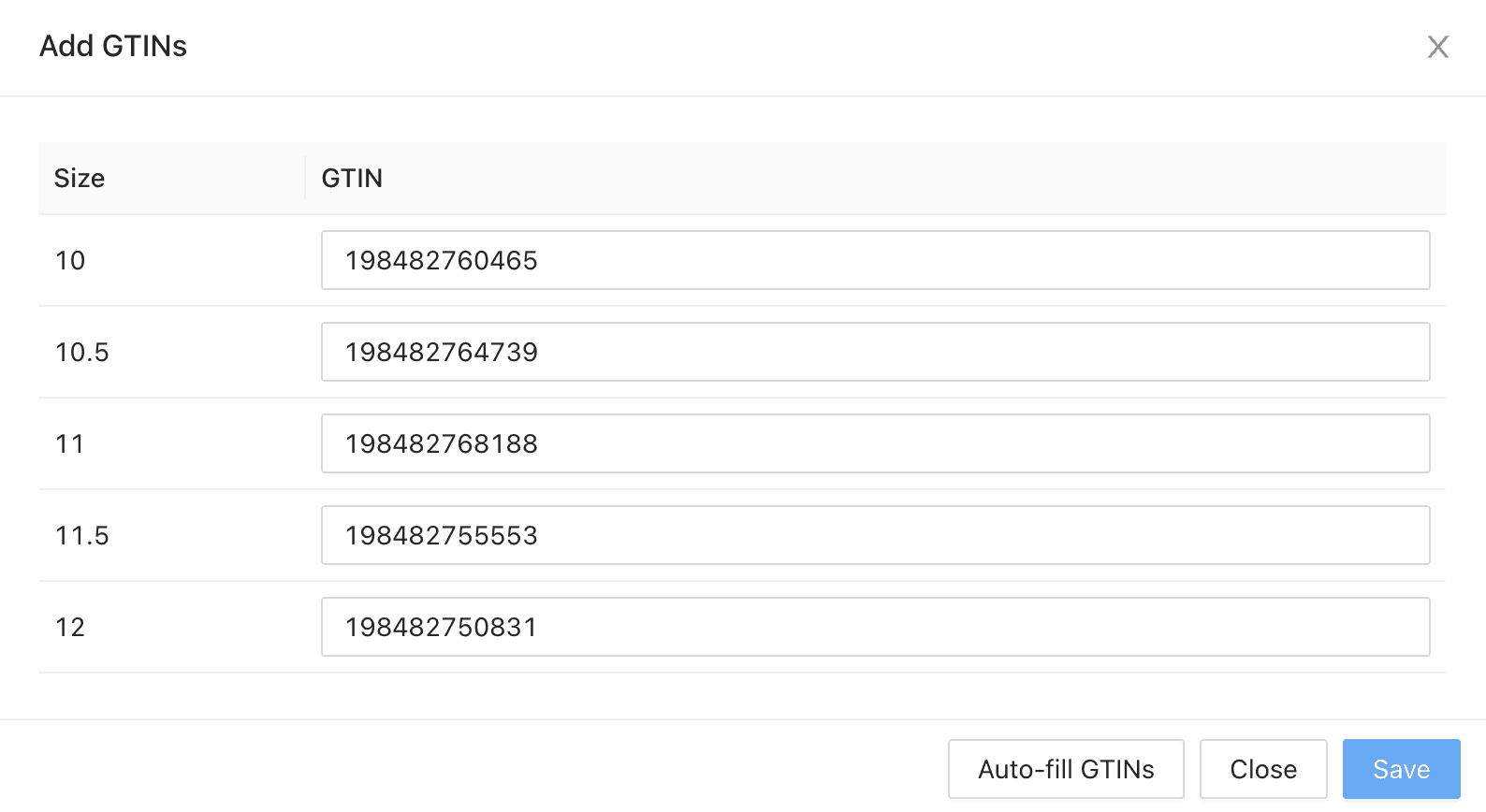 We've added support for Auto-GTIN fetching for sneaker products, you can one click fetch as many GTINs as possible for the shoe sizes available. GTINs are unique identifiers for sneakers, and they are used to track inventory and sales across multiple retailers, often used in advertising on Google, Facebook, etc.